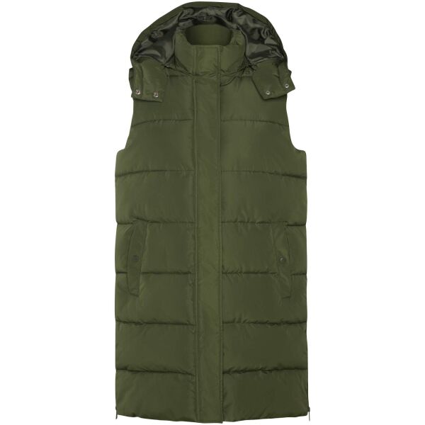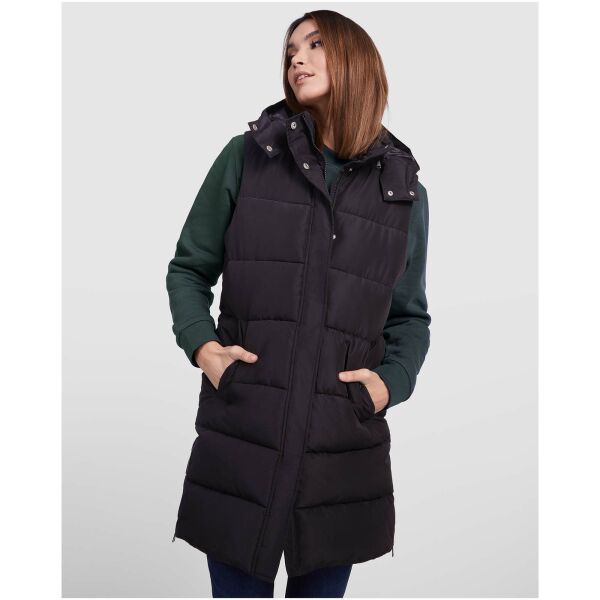 Gewatteerde bodywarmer met afneembare capuchon. Hoge kraag. Rits met verborgen flap aan de voorkant. Twee zakken met drukknoopsluiting. Openingen aan de zijkant met ritsen. Toegang tot binnenkant borst. Waterafstotend.