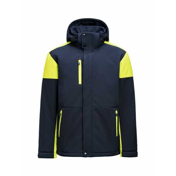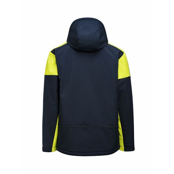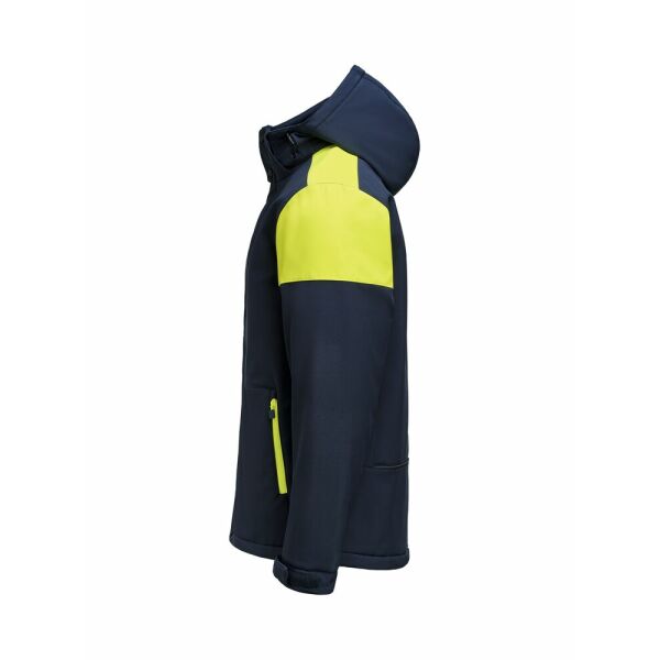 Gevoerde bicolor softshell jas met afneembare capuchon, contrasterende ritssluitingen en stormflap met drukknopen. Aanpasbare mouwen met velcrosluiting en trekkoorden aan de capuchon en de zoom. 2 binnenzakken met ritssluitingen. Reflecterende piping op de rug. Uitscheurbaar neklabel en afzonderlijk geweven maatlabel. Aan de binnenzijde van de linkerzijnaad werd een zakje voorzien voor het innaaien van een waschip. Zippullers in contrasterende kleur. Oeko-Tex 100 gecertificeerd.