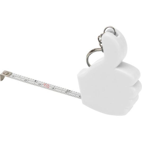 Sleutelhanger met kunststof rolmaat, (1 meter) in mm en inch, model 'duim'.